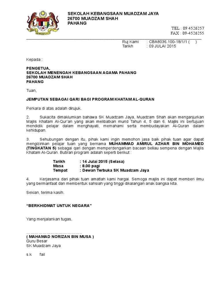 Penutupan perasmian perkhemahan surat jemputan unit beruniformfull description. Setiap orang yang membutuhkan informasi tentang acara atau kegiatan yang hendak dilaksanakan tentu sebelumnya perlu pemberitahuan lebih dulu agar memperoleh penjelasan secara detail, tentang tema acara, waktu. Contoh surat lamaran kerja, contoh surat kuasa, contoh surat pernyataan, contoh surat lulus temuduga, contoh surat resmi, contoh surat permohonan, contoh surat keterangan kerja, contoh surat perjanjian surat jemputan ke majlis anugerah cemerlang via www.slideshare.net. Kita akan lanjutkan pembahasan dengan mengenal beberap contoh surat undangan tidak resmi. Contoh surat permohonan peresmian gedung. Bertemu lagi dengan saya husnul. Cara membuat kop surat resmi dengan microsoft word. Surat pernyataan pada dasarnya dibuat untuk memperkuat pernyataan lisan agar memiliki payung hukum. Contoh surat somasi terkadang berkaitan dengan pelanggaran perjanjian, perihal penghinaan, hingga hutang piutang. Contoh surat permohonan perbaikan nama. Pihak kami amat berbesar hati sekiranya tuan dapat memenuhi jemputan kami. Tujuannya adalah agar tidak merugikan kedua belah pihak seandainya pernyataan yang disampaikan merupakan kebohongan atau tidak ditepati. Dalam dunia bisnis, penawaran akan selalu ada antara pihak satu dengan pihak lainnya.
