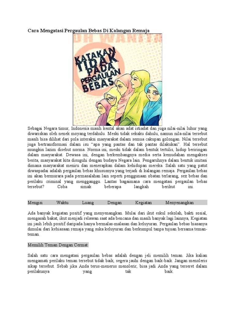 Cara Mengatasi Pergaulan Bebas Di Kalangan Remaja from 4.bp.blogspot.com Pada masa remaja saat ini adalah masa yang indah untuk mengukir cerita, namun impian memiliki masa muda yang bisa hilang dalam sekejap apabila remaja terjerumus dalam kesalahan pergaulan saat ini. Di era di mana pergaulan bebas semakin tidak terkontrol, mengetahui cara menghindari pergaulan bebas menjadi sangat penting. Cara mengatasi pergaulan bebas adalah sebagai berikut: Berdasarkan dari kalimat pergaulan bebas dapat diartikan bahwa tidak adanya batasan atau aturan yang mengatur tentang segala tingkah laku serta pergaulan dari seseorang ataupun kelompok. Sekarang anak sd saja sudah mengenal pacaran. Pengertian pergaulan bebas ialah sebuah arti yang diambil dari kata pergaulan dan bebas. Cara mencegah terjadinya pergaulan bebas pada remaja sebenarnya semakin sulit. Secara umum, pengertian pergaulan bebas adalah salah bentuk perilaku menyimpang yang melewati batas dari kewajiban, tuntutan, aturan, syar.